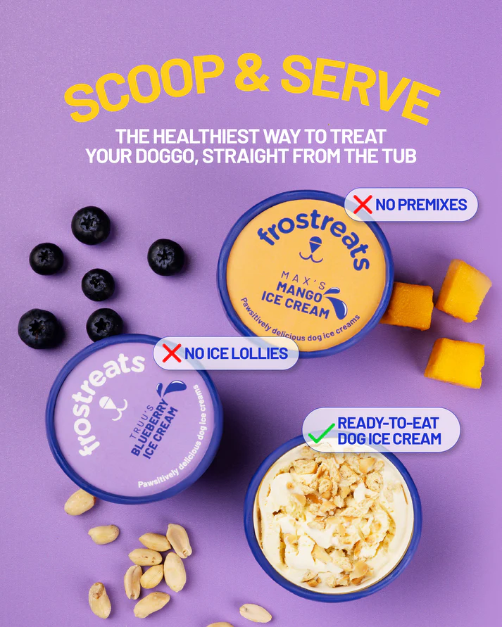 A big part of this acceptance comes from Frostreats’ flavour architecture, created not to impress humans, but to delight dogs. Fruits such as mango, banana, and blueberry form the heart of the range, chosen because dogs instinctively enjoy their sweetness and digest them easily. For dogs who love richer flavours, Frostreats offers a peanut butter variant that’s high in protein and energy. And for dogs who like texture, there’s a Cookies flavour, crafted using fortified dog biscuits enriched , with vitamins, zinc, magnesium, and essential minerals. The original Vanilla is where we started from, and crafted with fresh vanilla beans, the flavour captures the smoothness and creaminess Vanilla is known to have.